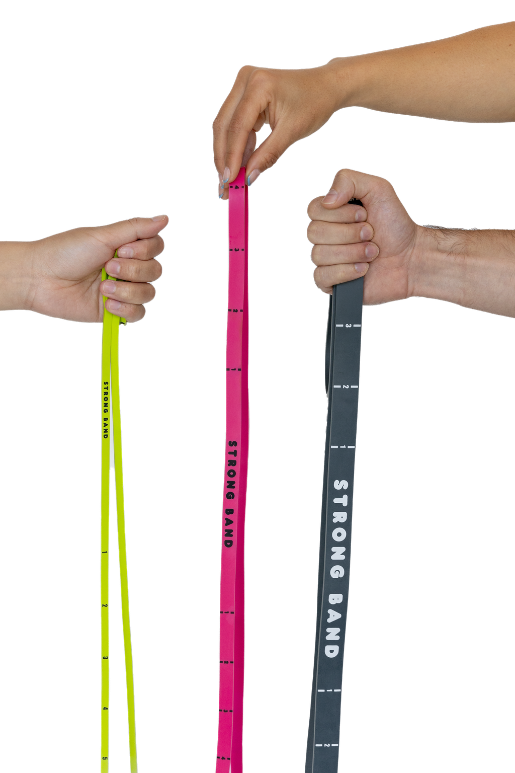 The essential starter kit for strength training, mobility, and flexibility. The Strong Band Trio Set includes all three of our signature bands: Laser Lime, Power Pink, and Onyx.